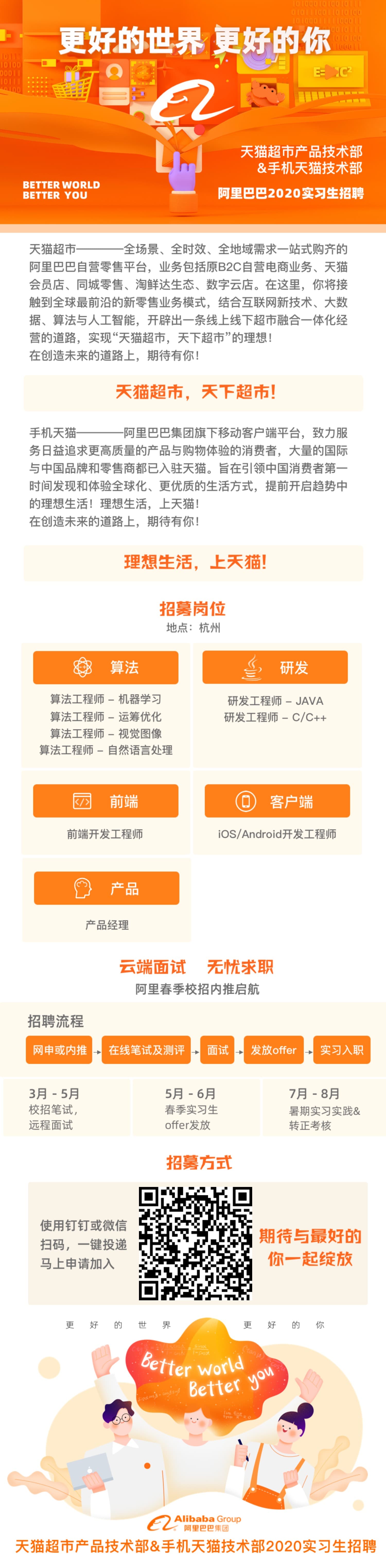 【阿里巴巴】天猫超市&手机天猫 2020 春季实习生校招聘~